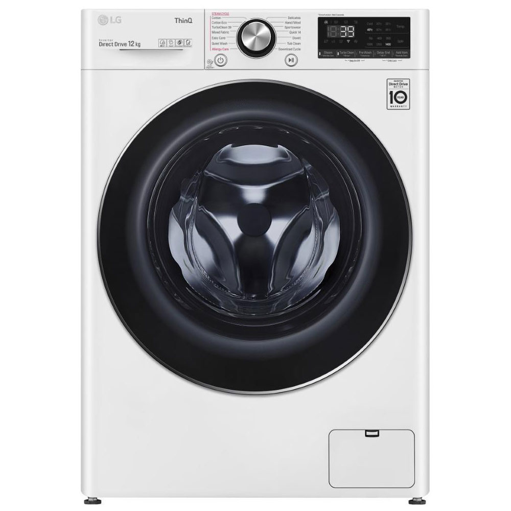 The LG 12kg front load washing machine with AI Direct Drive technology can weigh the load and assess fabric softness to automatically select the optimal wash motions for thorough cleaning and clothing care.