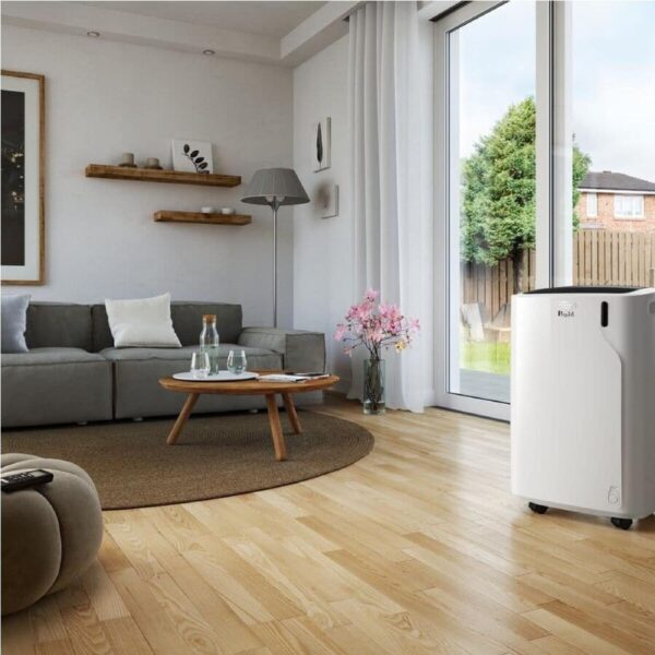 Beat the heat this summer with the DeLonghi 2.6kW Portable Air Conditioner. This cooling-only unit provides welcome relief from sweltering temperatures with its powerful 2.6 kilowatt capacity and 3 fan speeds adjustable via the included remote control. Measuring 425mm wide 345mm high and 700mm deep the sleek white design blends into any living space. It also comes equipped with a 24 hour timer so you can set it and forget it. With the window kit you can vent the unit through a window to maximize efficiency. Additional accessories like the remote control add convenience. This portable air conditioner’s slim profile and caster wheels provide the flexibility to cool down any room you need. Finally the manufacturer’s part number for this product is PACEM93KSILENT. Bring fresh cool air into your home this season with the DeLonghi Portable Air Conditioner.