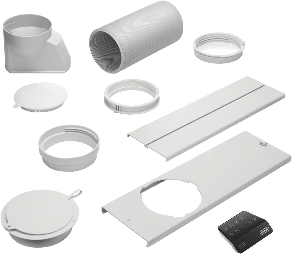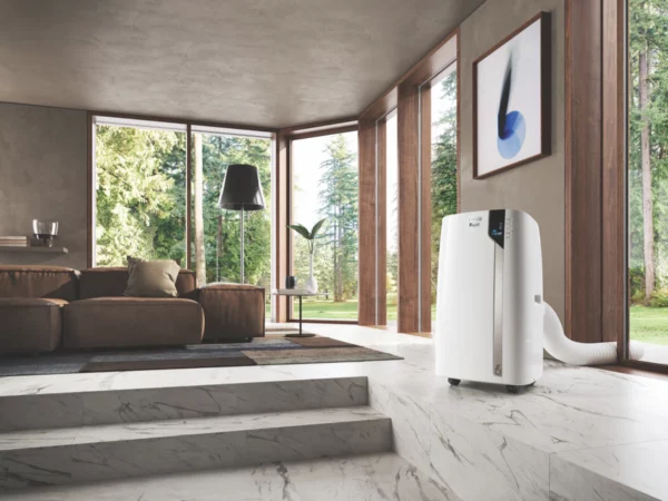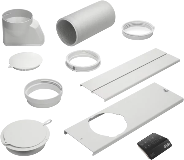 The DeLonghi 3.3kW Portable Air Conditioner provides sleek white cooling power for homes and offices. This unit features 3 fan speeds 24 hour timer and convenient remote control so you can adjust the temperature from across the room. With a cooling capacity of 3.3kW this air conditioner is ideal for rooms up to 150 square feet. The 390mm depth allows the unit to sit unobtrusively against the wall. This portable model can be easily moved between rooms and plugs into a standard outlet. Setup takes just minutes with the user-friendly window installation kit. Quiet operation keeps noise to a minimum while powerful airflow cools. This smart home enabled air conditioner can be controlled via your smartphone. The manufacturer’s part number for this product is PACEX130CST WIFI. Bring reliable comfort to any room with the DeLonghi Portable Air Conditioner.