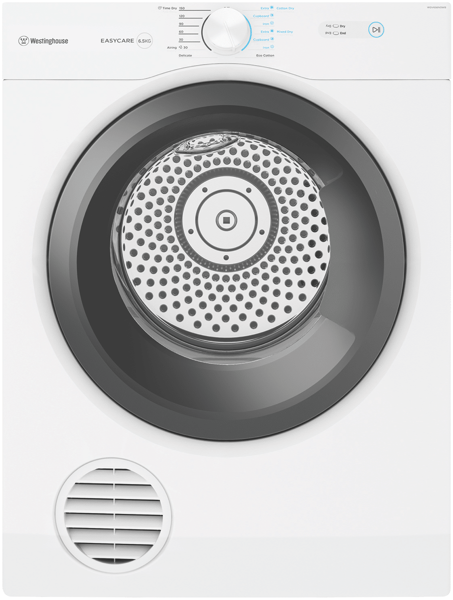 This white Westinghouse vented dryer has the capacity to dry 6.5 kg, which is perfect for households of one or two or a family with just-in-case dryer needs. Select the setting for best results with its 6 types of drying programs. It has reverse tumbling, delicates, and iron dry programs. A vented dryer requires outside ducting to send the moist air outside via a hose, or the dryer needs to be placed in a really well-ventilated room.