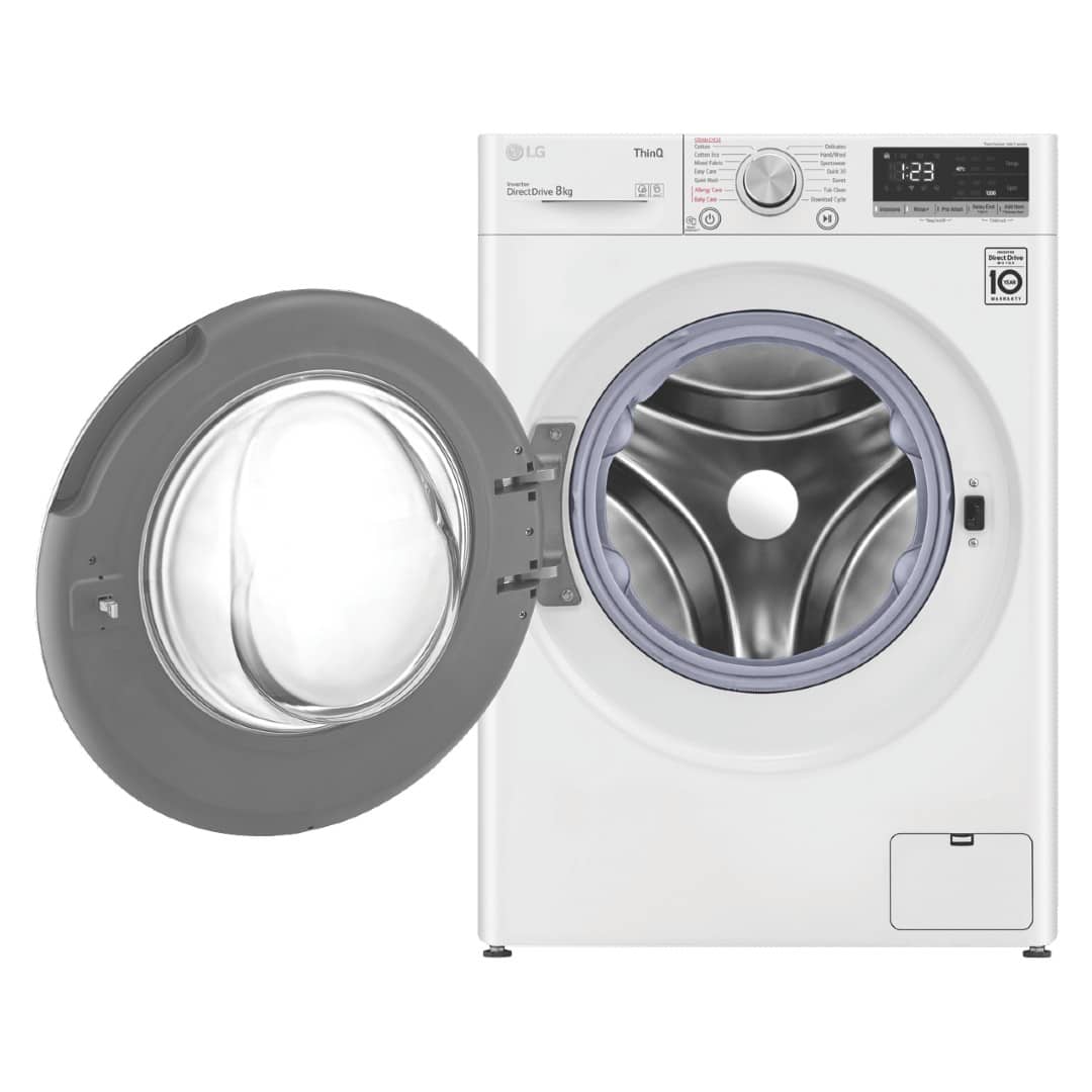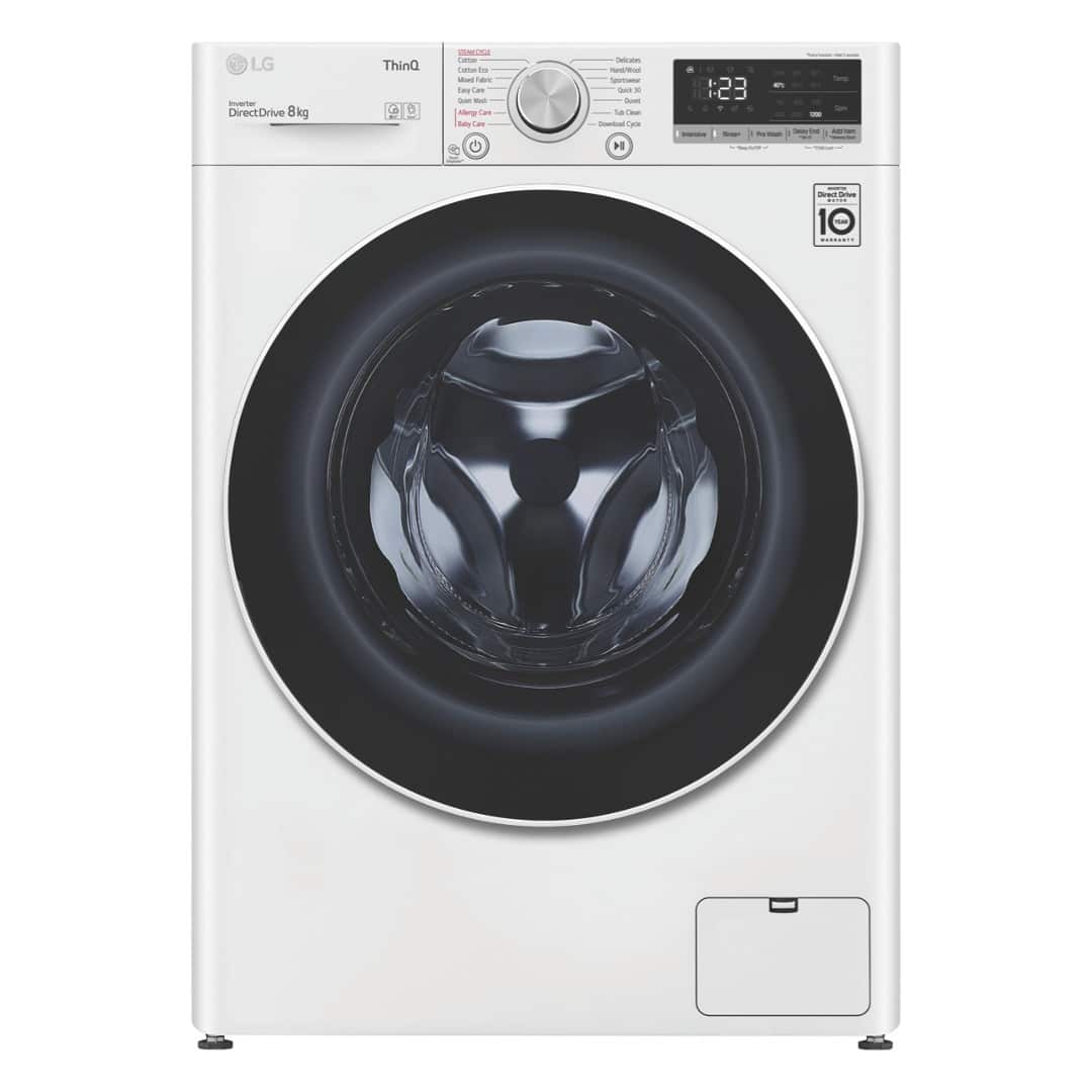 This white LG front load washing machine has a high 4 star WELS water rating and a 4.5 star energy rating for bill savings, and the capacity to wash 8kg of dry laundry per load so you can get the job done in fewer loads for your three to four person household. Its 11 types of washing programs let you select the setting for best washing results.