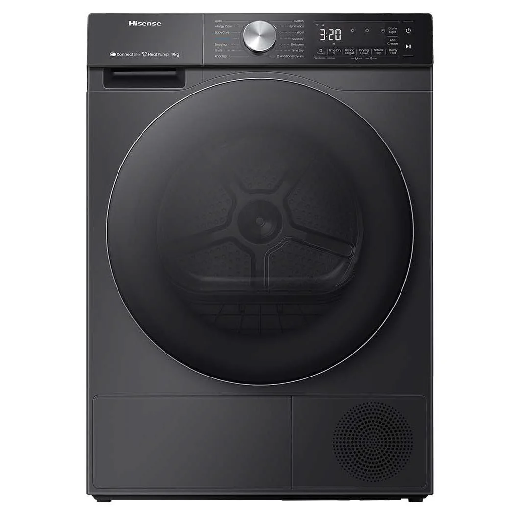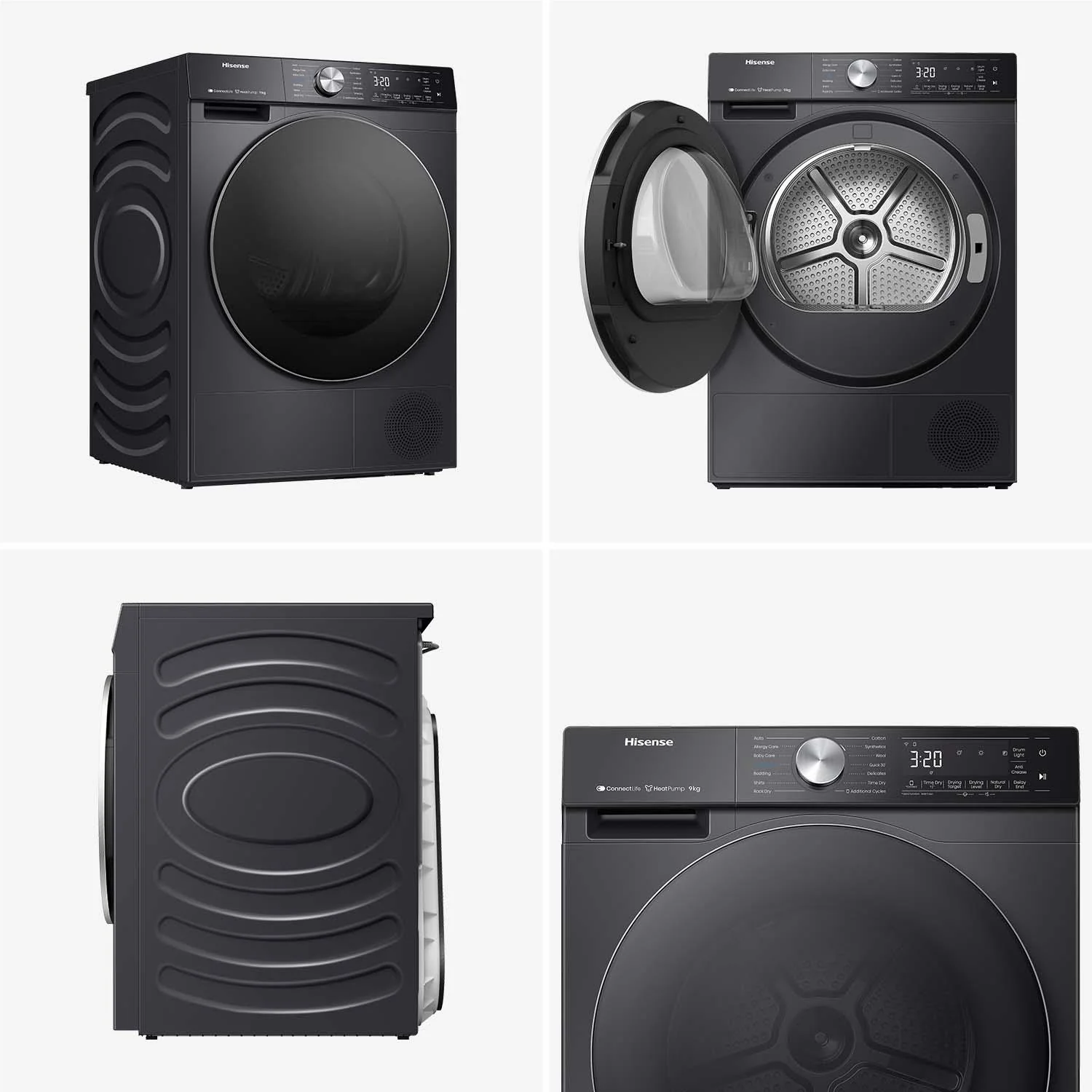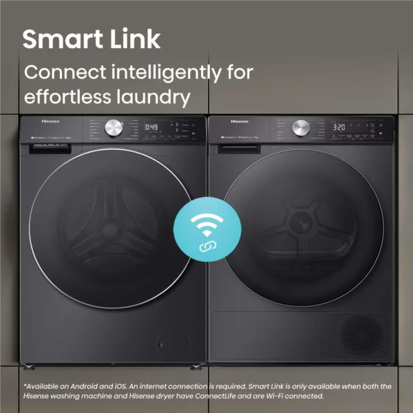 Want to dry clothes efficiently while saving on energy bills? This Hisense 9kg Heat Pump Dryer (HDF7S90HB) is a game changer. It boasts an impressive 10 star energy rating helping you cut down on power costs. With 13 programs including Cotton Synthetics and Quick 30′ you can handle all types of laundry. The Ion Refresh feature eliminates odors while the Allergy Care function keeps your clothes extra clean. Its 3 dryness levels and anti crease option ensure your garments come out just right. The charcoal black finish adds a sleek touch to your laundry space. ConnectLife enabled it can link to eligible Hisense washers for a seamless laundry experience. Plus the child lock feature adds an extra layer of safety. Measuring 595mm x 845mm x 640mm this dryer comes with a 3 year warranty for peace of mind.