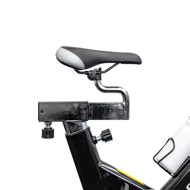 The ASB500 spin bike is a great compact spin bike for home use. With heavy duty frame, well padded seat and fully adjustable positioning this bike will suit all users. The drive uses a quality three-piece crank with a heavy duty drive belt for endurance and reliability. It has a fully adjustable seat and handle height to enable correct use.