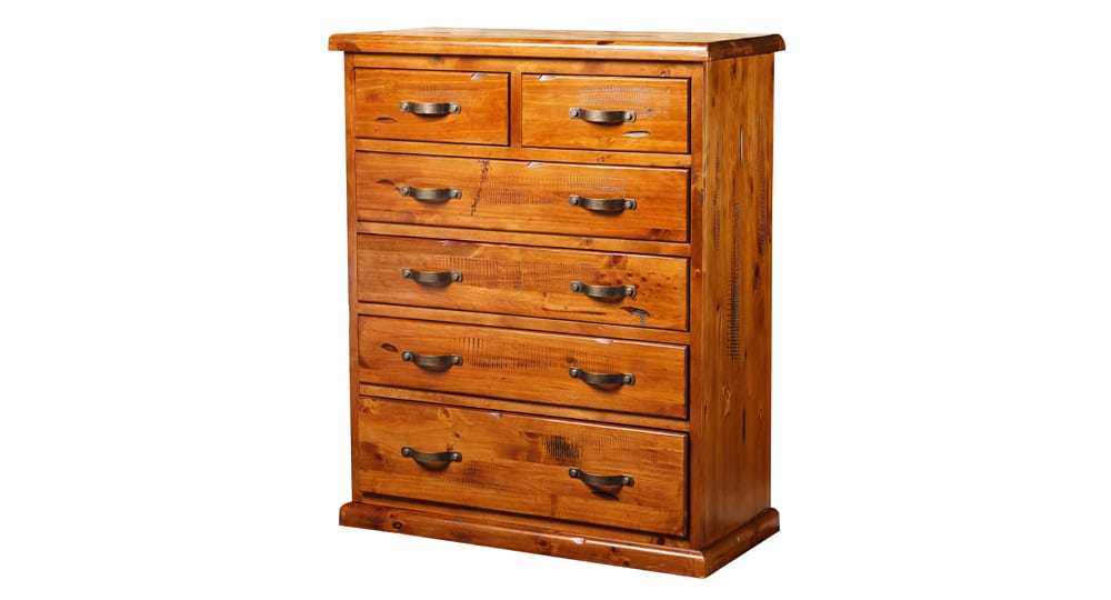 The Fitzroy 6 drawer tallboy is beautifully designed with a rustic style. All drawers have metal runners.
