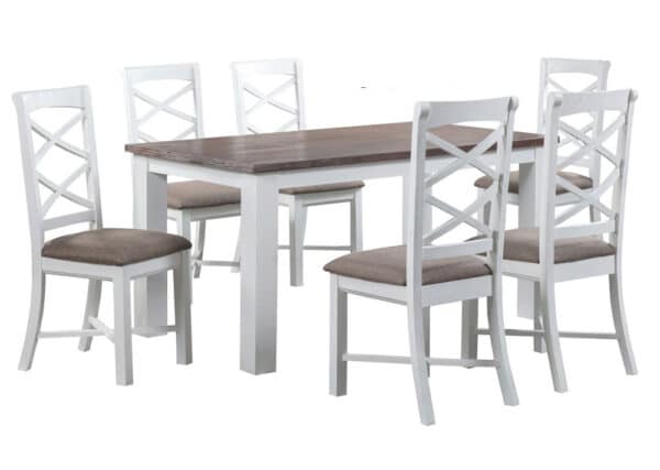 The Haus range is sure to be a favourite in your home and will add warmth with timber finished in an aged sundried ash. This 7pc dining suite is sturdily built and has room for your entire family.