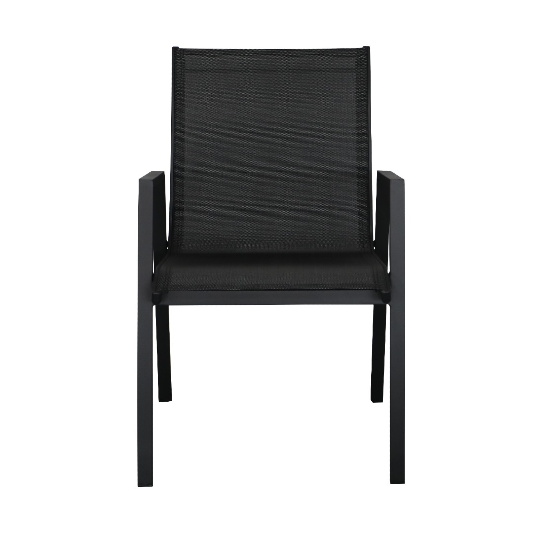 Take your meals alfresco with the Icaria outdoor dining set. Featuring a sturdy, powder-coated aluminium table and 6 stackable textiline chairs, this set is designed for durability and easy storage. Available in charcoal or white, this set is the perfect addition to your outdoor entertaining area.