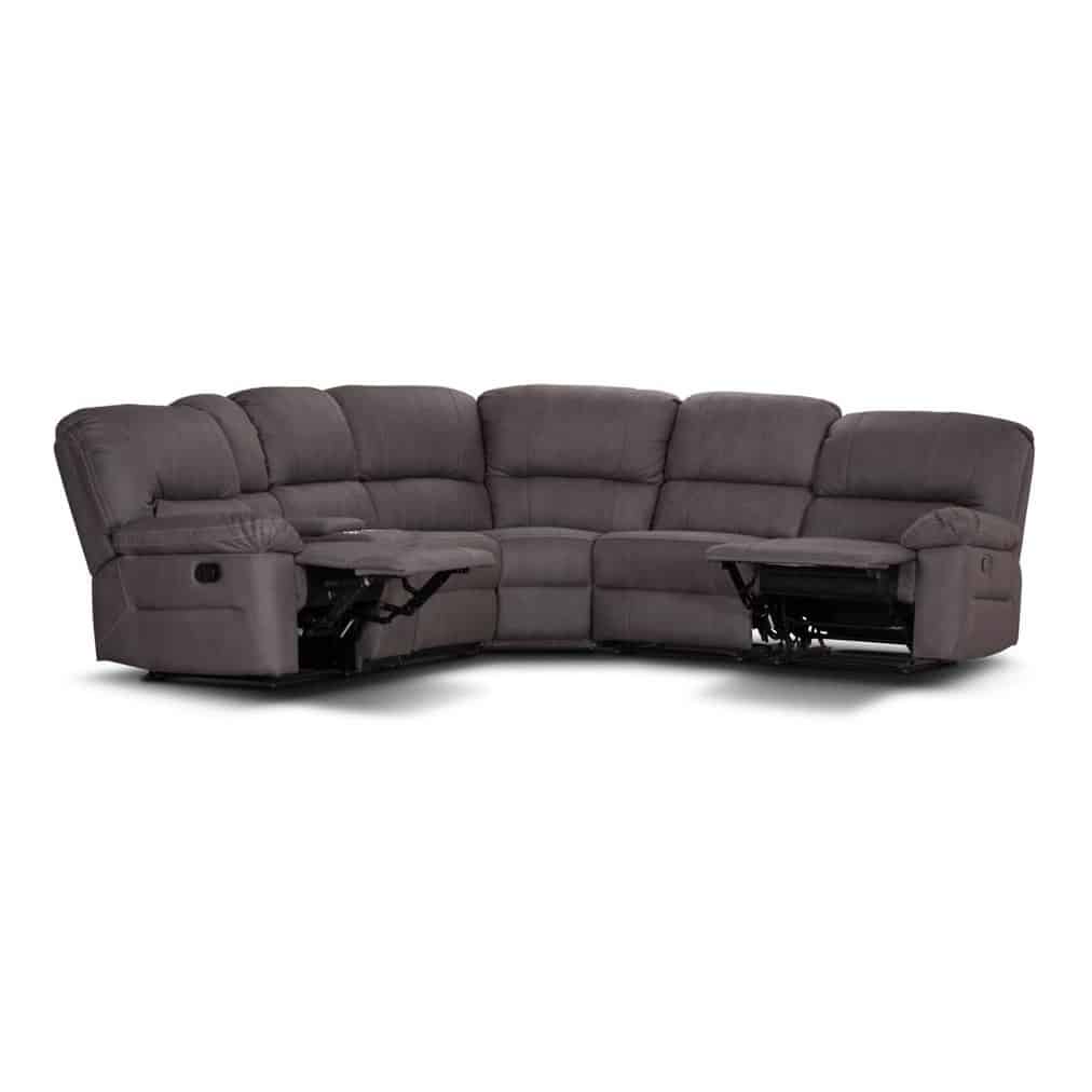 Bring some movie magic into your home with the Jersey Modular Corner Lounge! Put your feet up relax and watch your movies in comfort in this luxurious lounge that features 3 manual recliners and a storage console with cupholders.