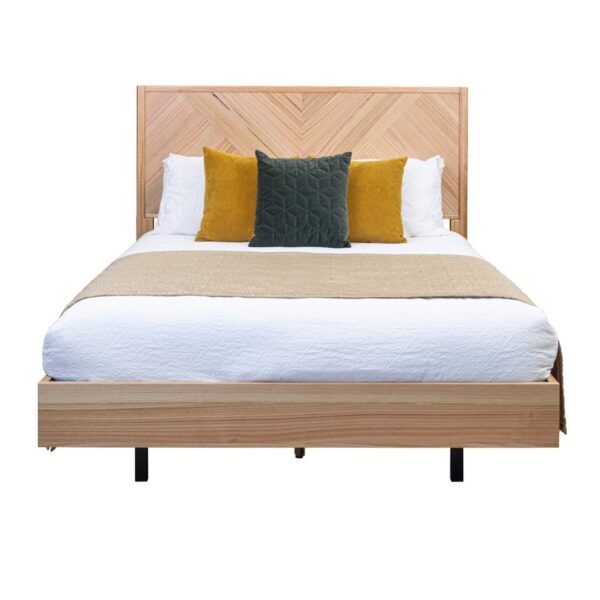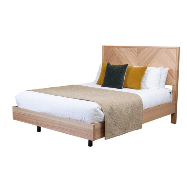 The Perisher Queen Bed is a stunning addition to any bedroom, boasting a design inspired by French aesthetics. Crafted with a mosaic of hardwood, this bed showcases a parquet decorative effect that adds a touch of elegance to your living space.