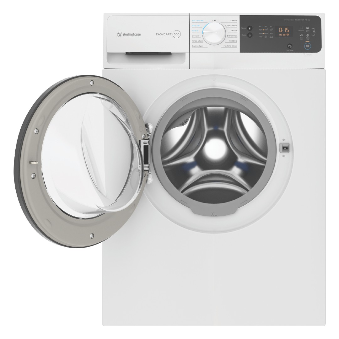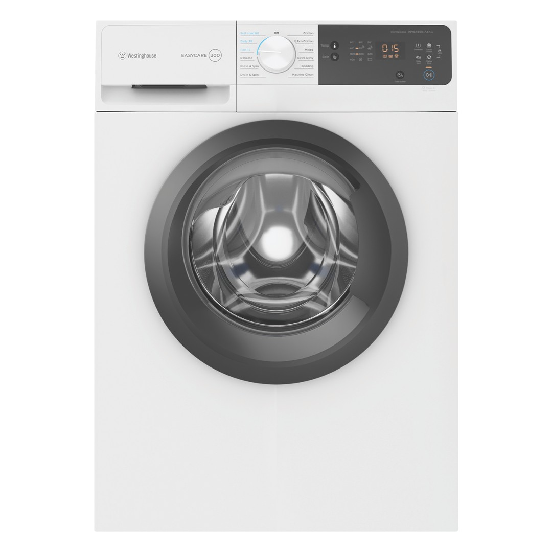Tackle laundry day with ease thanks to the Westinghouse 7.5kg Front Load Washer. This white washing machine makes light work of all your clothing and linen needs for the whole family. With a generous 7.5kg washing capacity 12 diverse wash programs and a quick 15 minute FAST cycle this Westinghouse washer enables you to refresh clothes in a hurry or give heavily soiled items an intense clean. The range of wash settings include Delicate Bedding Drain & Spin Cotton Mixed Extra Dirty Machine Clean and Eco Cotton so you can select the ideal mode for each load. Additional handy features like the Delay End function let you schedule wash completion times to suit your lifestyle while the Add Clothes button provides the flexibility to throw in last minute items mid-cycle. An intuitive LED display with dial control makes operation straightforward. This front loader also boasts a high 1200RPM spin speed to reduce drying times. Rated an impressive 4 stars for water efficiency the washer uses an economical 76 litres per wash. With an energy rating of 3.5 stars the Westinghouse washer helps to save on running costs too. Covered by a 2 year warranty for peace of mind this quality washing machine will keep your laundry looking great for years to come. Discover how this Westinghouse front load washer can make laundry simple today.