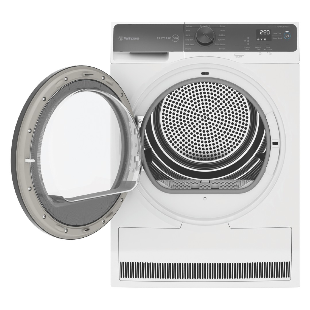 Westinghouse introduces their innovative heat pump system with this 8kg EasyCare 500 series heat pump dryer. With SenseDry Technology, it ensures gentle drying with great performance. The 8kg capacity is ideal for smaller households of three to four people. This dryer also has an impressive energy efficiency rating of 7 stars.
