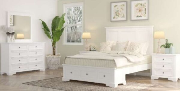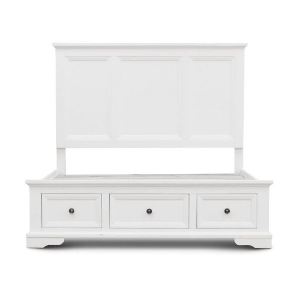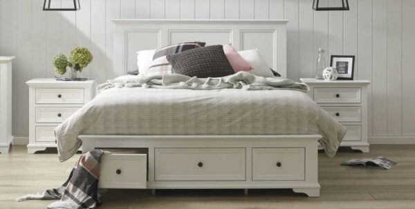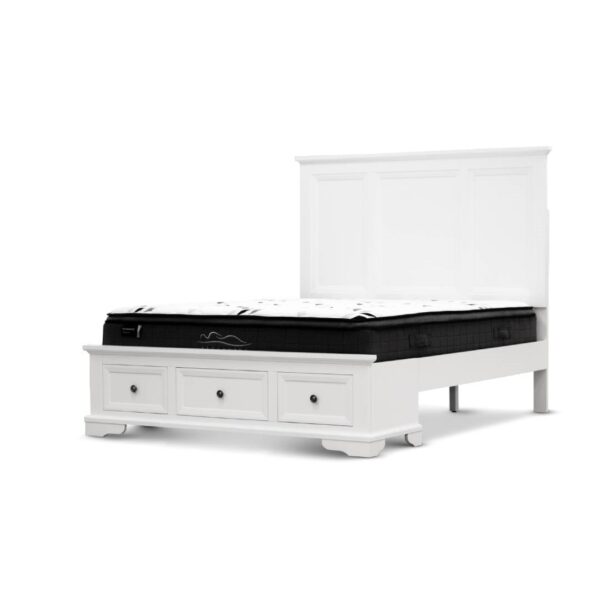 Upgrade your bedroom with the elegant French Provincial Sala King Bed featuring a 3-drawer bed end. This sophisticated bed not only adds a touch of charm to your bedroom but also offers practical storage solutions.