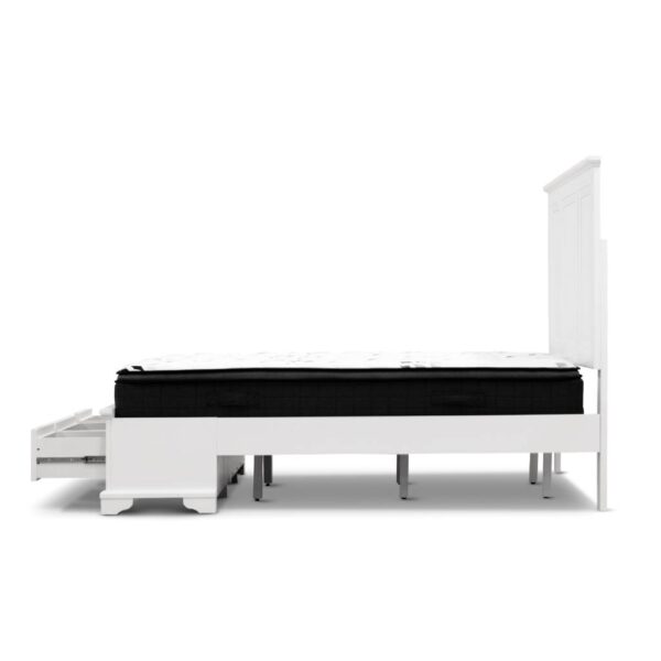 Upgrade your bedroom with the elegant French Provincial Sala King Bed featuring a 3-drawer bed end. This sophisticated bed not only adds a touch of charm to your bedroom but also offers practical storage solutions.