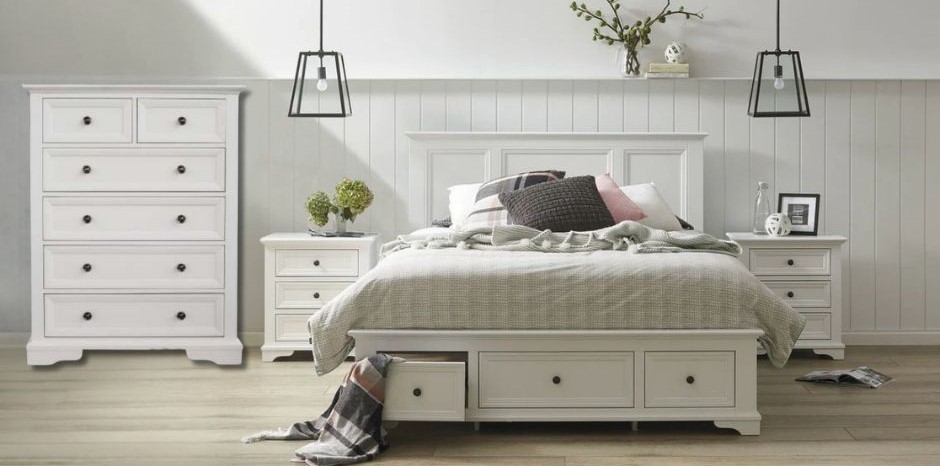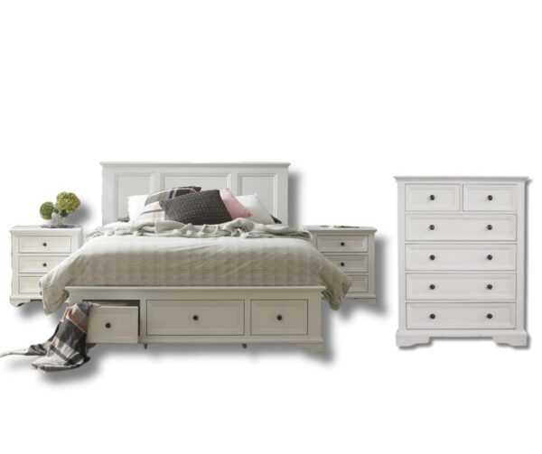 Upgrade your bedroom with the elegant French Provincial Sala Queen Bedroom Suite featuring a 3-drawer bed end. This sophisticated bed not only adds a touch of charm to your bedroom but also offers practical storage solutions.