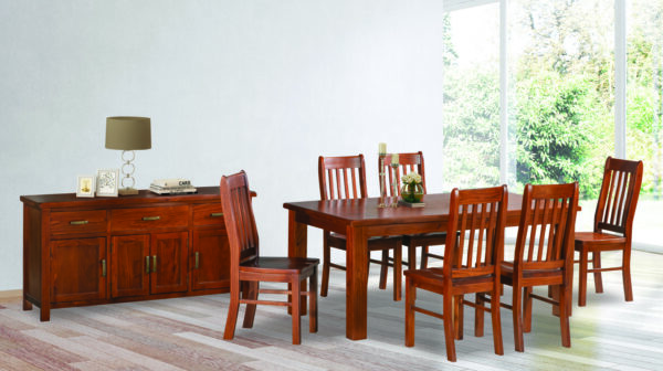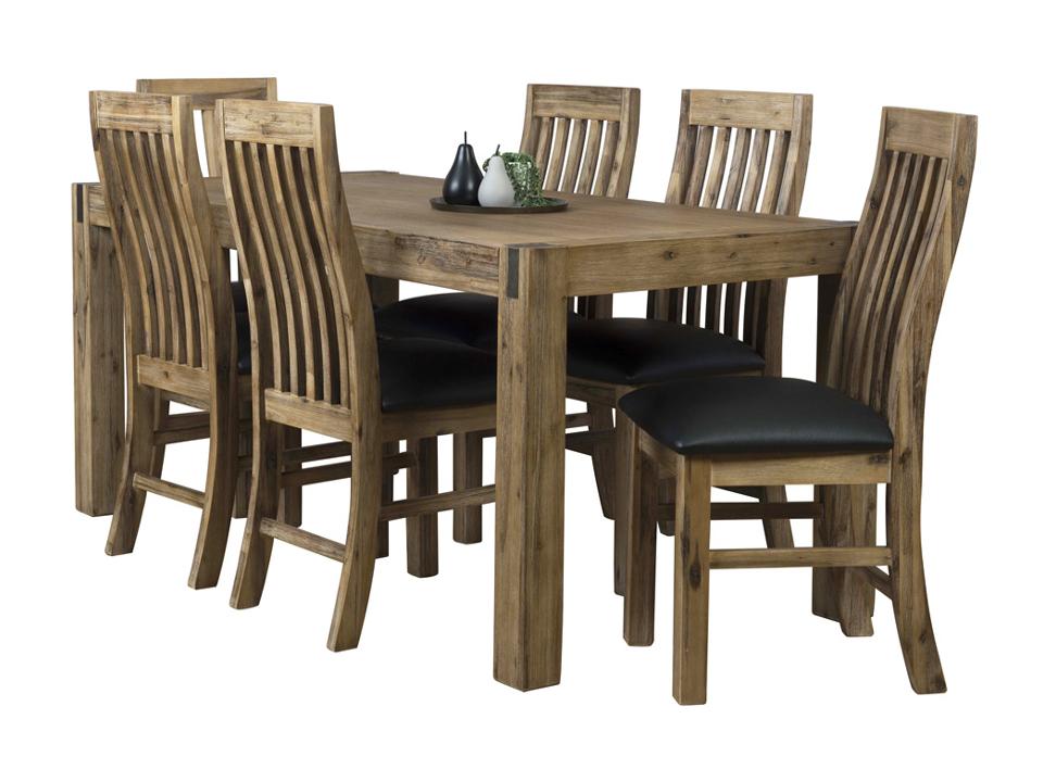 Looking for furniture with a hint of industrial style? The Sterling range features brushed metal corner detailing and a silver brush finish over acacia wood. This 6 seat dining suite will stand the test over many family meals.