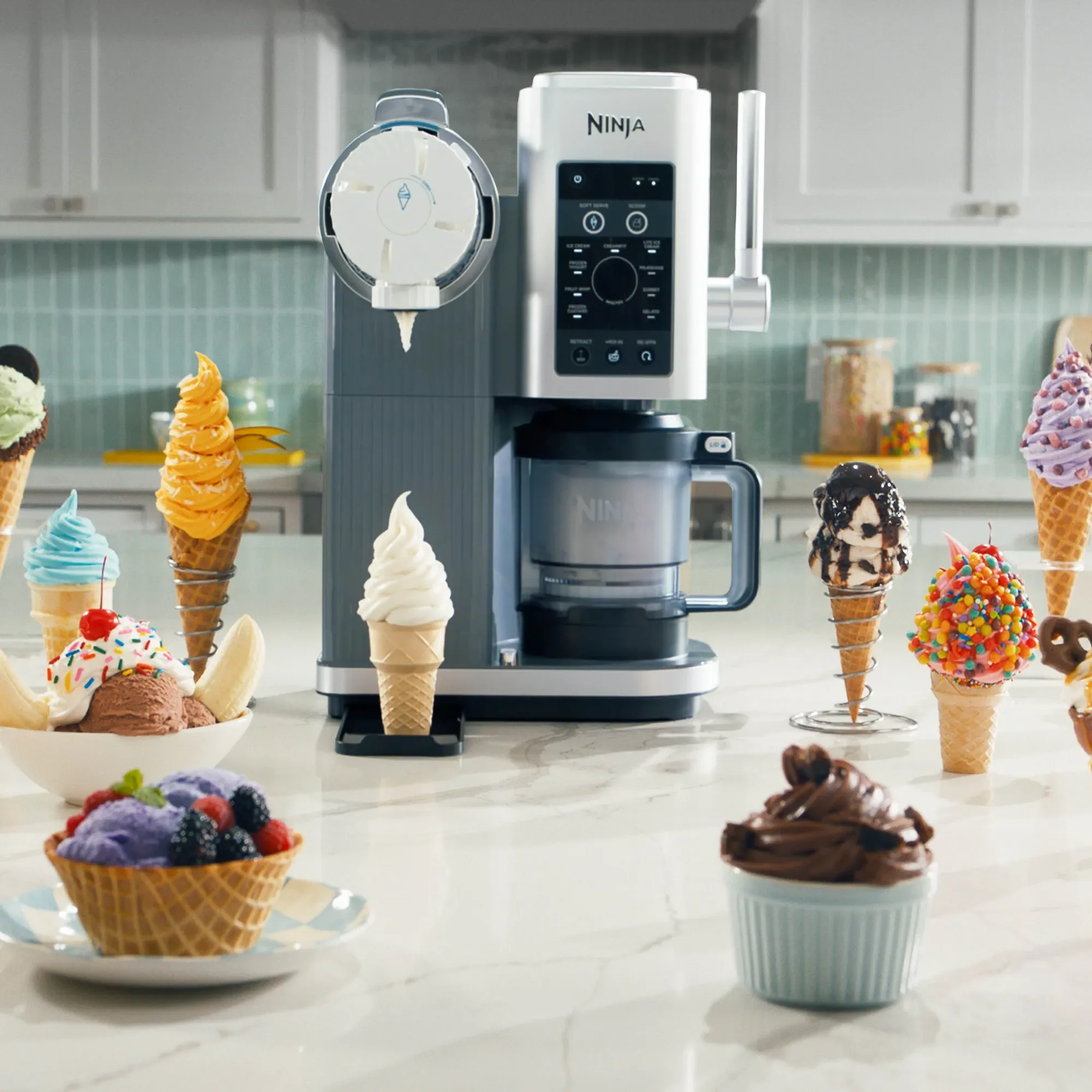 Additional Features | 4 small cones per 470mL pint, Customise flavours and choose between classic scooped or swirled treats, Soft Serve Creamify Technology spins soft serve programs at faster speeds to create smooth, creamy textures |