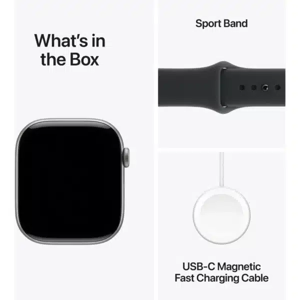 The Apple Watch Series 11 GPS 46mm brings invaluable health insights, better fitness metrics and big battery life. Sleep score provides an easy way to help track and understand the quality of sleep to make it more restorative. Take an ECG at any time. Get irregular rhythm, high or low heart rate & possible sleep apnoea notifications. View overnight health metrics with the Vitals app and take blood oxygen readings. Series 11 is comfortable to wear around the clock — while exercising or even sleeping to track key metrics. With advanced metrics for any workout plus features like Pacer, Heart Rate Zones, training load, Workout Buddy powered by Apple Intelligence from a nearby iPhone and more. Up to 24 hours of normal use on one charge, and fast charging for up to 8 hours of normal use in just 15 minutes. Incredibly durable glass display that’s 2x more scratch-resistant than Series 10, plus water resistant at up to 50m and IP6X dust-resistant. The Series 11 can detect a hard fall or severe car crash, automatically connect with emergency services and notify emergency contacts. Send a text, take a call, listen to music, use Siri and get notifications – the Series 11 works with an iPhone or Wi-Fi to keep you connected.