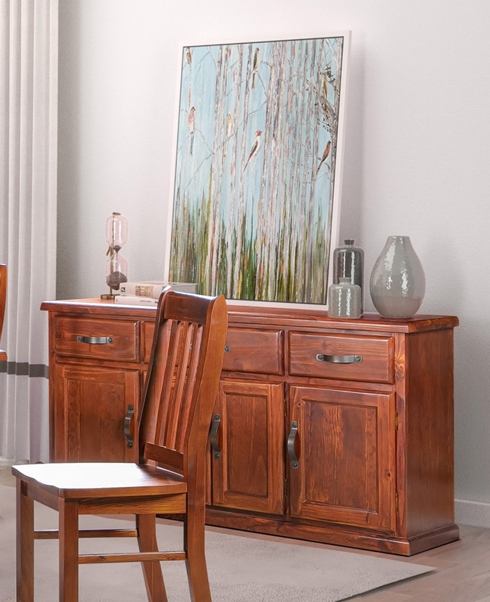 The Woodstock range brings a traditional warm and homely feel with quality furniture that lasts. The buffet includes 3 drawers and plenty of cupboard space, paired with rustic aged-look handles.